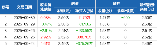 翠微股份:融资净买入11.79万元,融资余额2.5亿元(09-30)