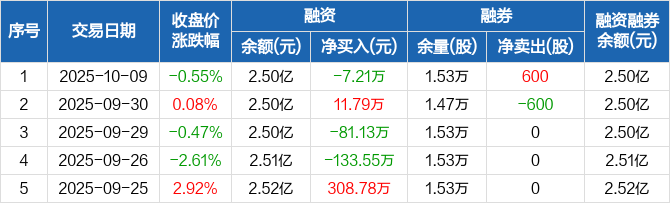 翠微股份:融资净偿还7.21万元,融资余额2.5亿元(10-09)