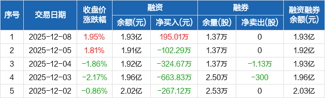 翠微股份:融资净买入195.01万元,融资余额1.93亿元(12-08)
