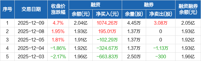 翠微股份:融资净买入1074.26万元,融资余额2.04亿元(12-09)