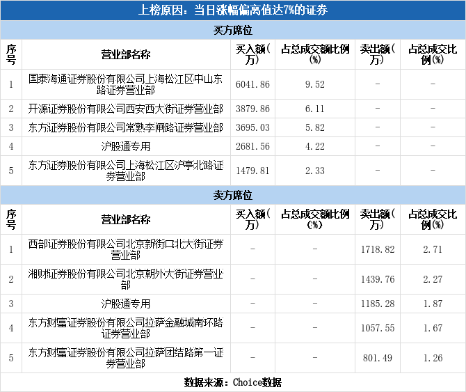 沪股通现身龙虎榜,翠微股份涨停(12-16)