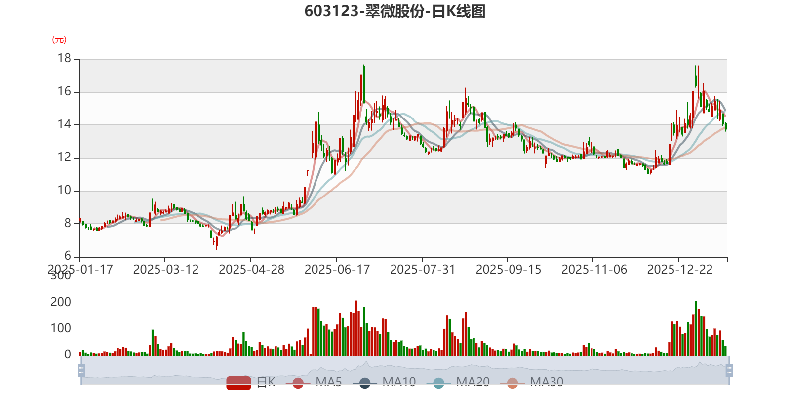 中证智能财讯翠微股份(603123)1月16日晚间披露2025年度业绩预告,预计2025年归母净利润亏损4.5亿元至4.9亿元,上年同期亏损6.87亿元;扣非净利润亏损4.9亿元至5.3亿元,上年同期亏损6.81亿元。以最新收盘价计算,市净率(LF)约6.01倍,市销率(TTM)约4.9倍。