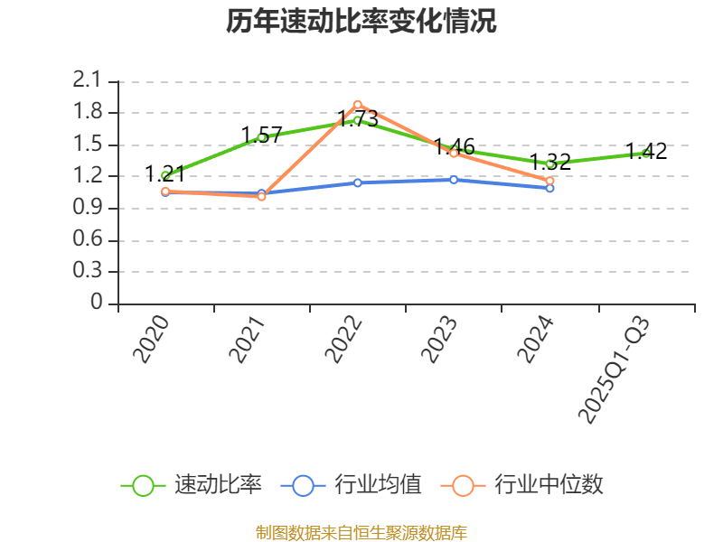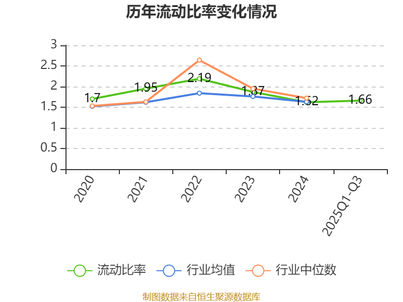 2025年前三季度,公司流动比率为1.66,速动比率为1.42。