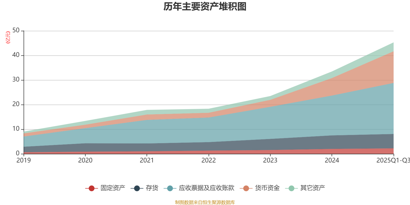 资产重大变化方面,截至2025年三季度末,公司货币资金较上年末增加81.11%,占公司总资产比重上升7.19个百分点;存货较上年末增加6.11%,占公司总资产比重下降3.55个百分点;应收票据及应收账款较上年末增加28.13%,占公司总资产比重下降2.59个百分点;固定资产较上年末增加12.38%,占公司总资产比重下降0.99个百分点。
