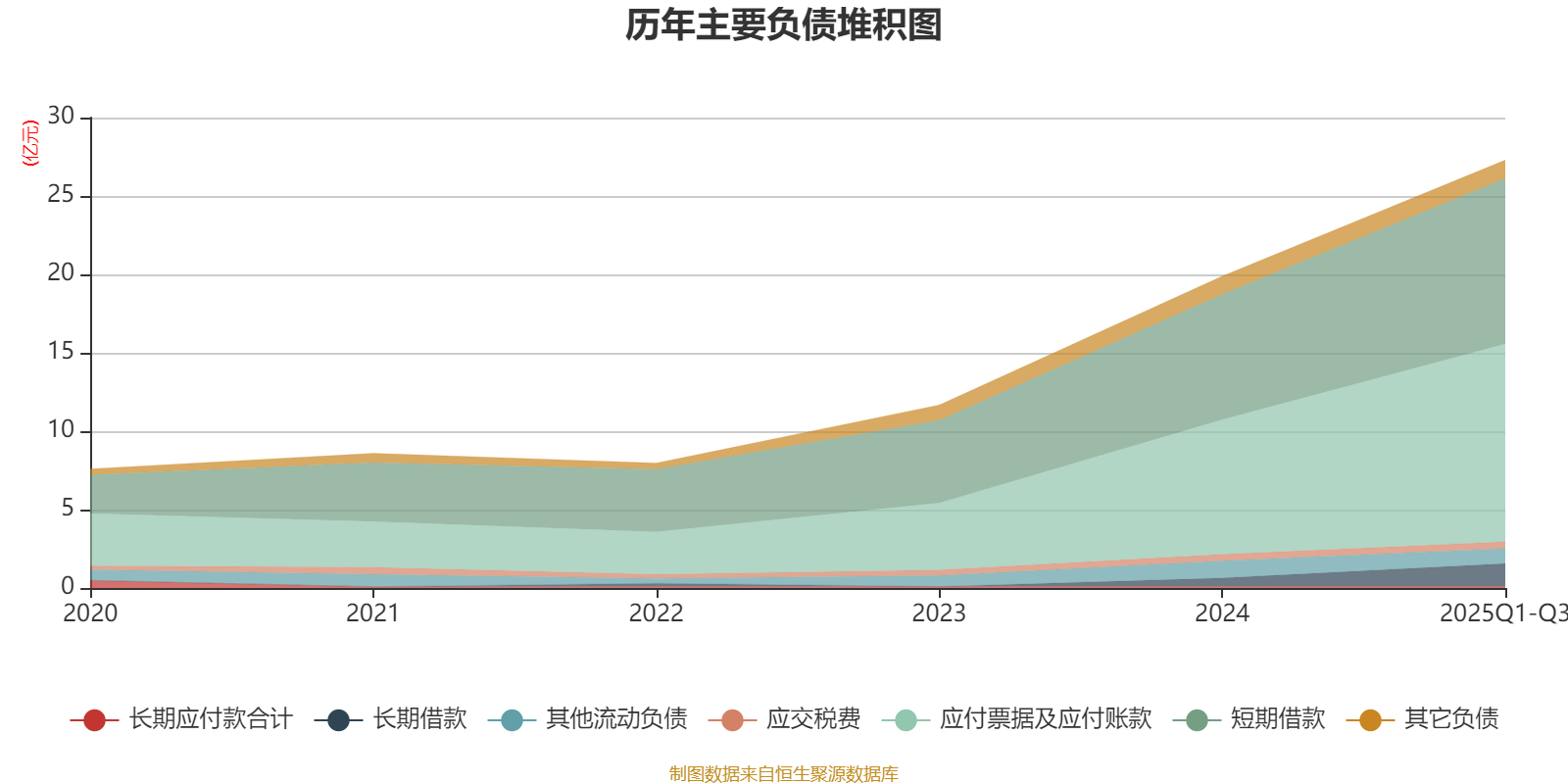 负债重大变化方面,截至2025年三季度末,公司应付票据及应付账款较上年末增加46.81%,占公司总资产比重上升2.17个百分点;长期借款较上年末增加170.03%,占公司总资产比重上升1.62个百分点;其他流动负债较上年末减少12.27%,占公司总资产比重下降1.16个百分点;短期借款较上年末增加32.15%,占公司总资产比重下降0.57个百分点。