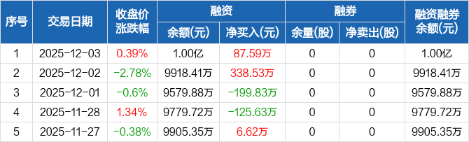 江南新材:融资净买入87.59万元,融资余额1亿元(12-03)