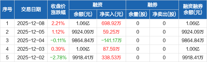 江南新材:融资净买入698.92万元,融资余额1.06亿元(12-08)