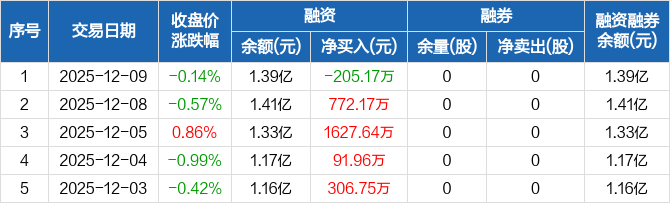 中材节能:融资净偿还205.17万元,融资余额1.39亿元(12-09)