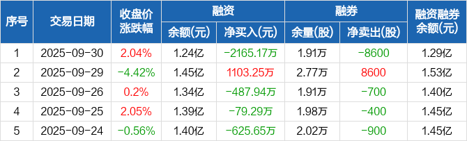 春风动力:融资净偿还2165.17万元,融资余额1.24亿元(09-30)