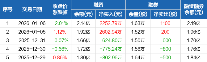 春风动力:融资余额2.14亿元,创历史新高(01-06)