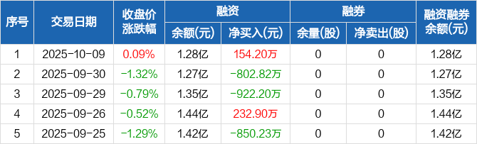 中重科技:融资净买入154.2万元,融资余额1.28亿元(10-09)