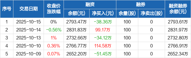 恒尚节能:融资净偿还38.36万元,融资余额2793.47万元(10-15)