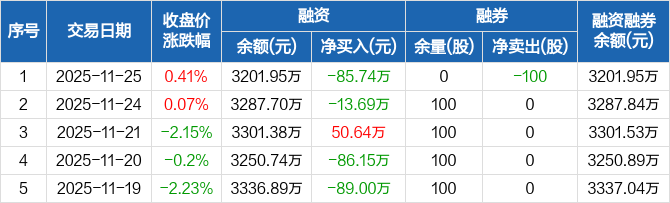 恒尚节能:融资净偿还85.74万元,融资余额3201.95万元(11-25)