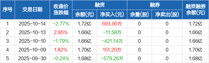 海量数据:融资净买入693.9万元,融资余额1.72亿元(10-14)
