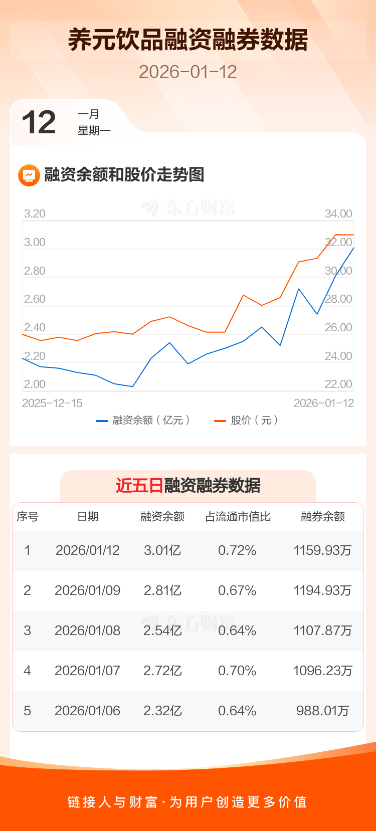 交易所最新数据显示,养元饮品于2026年1月12日获融资买入6501.25万元,融资偿还4469.94万元,当日融资净买入2031.31万元。目前,该股融资余额3.01亿,占流通市值比例为0.72%。