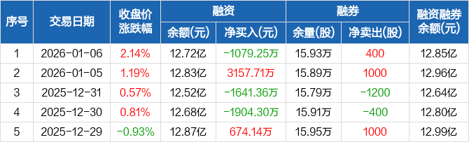 汇顶科技:融资净偿还1079.25万元,融资余额12.72亿元(01-06)