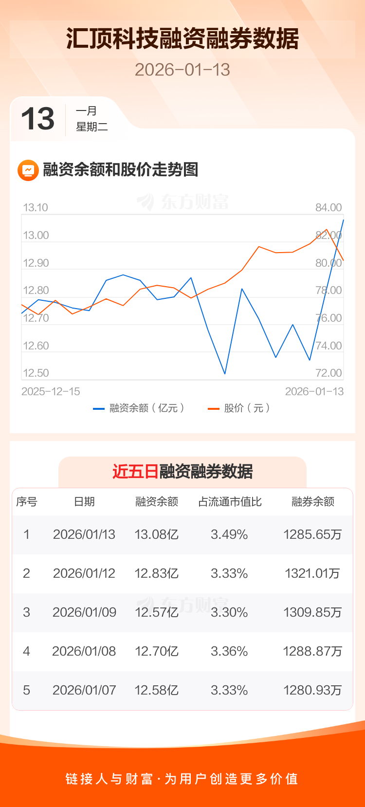 交易所最新数据显示,汇顶科技于2026年1月13日获融资买入1.02亿元,融资偿还7721.95万元,当日融资净买入2431.62万元。目前,该股融资余额13.08亿,占流通市值比例为3.49%。