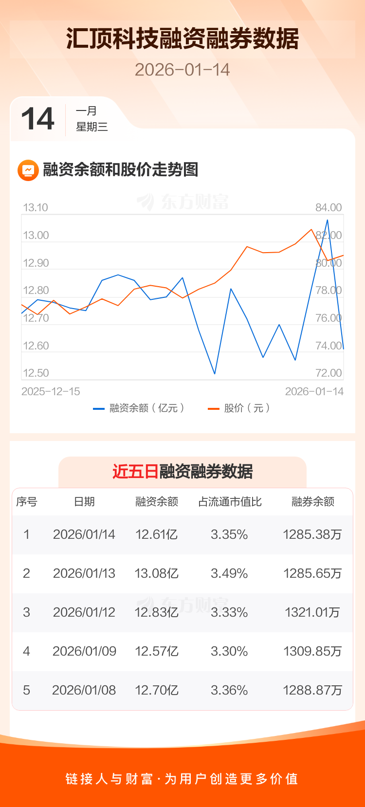 交易所最新数据显示,汇顶科技于2026年1月14日获融资买入8577.44万元,融资偿还1.32亿元,当日融资净偿还4622.83万元。目前,该股融资余额12.61亿,占流通市值比例为3.35%。