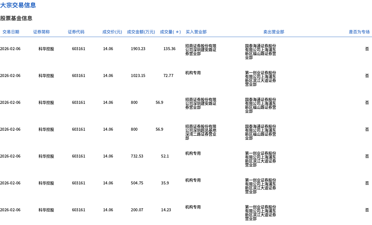 科华控股今日大宗交易折价成交559.53万股,成交额7866.96万元