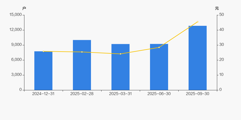 截至2025年9月30日,公司最新总股本为1亿股,其中流通股本为3500.28万股。户均持有流通股数量由上期的3799股下降至2727股,户均流通市值12.4万元。