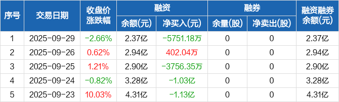 福达股份:融资净偿还5751.18万元,融资余额2.37亿元(09-29)