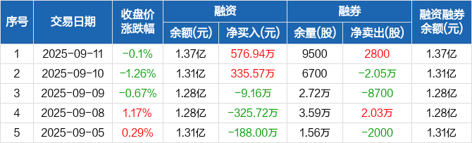 渤海轮渡:融资净买入576.94万元,融资余额1.37亿元(09-11)