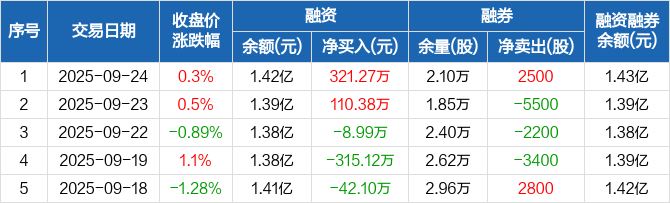 渤海轮渡:融资净买入321.27万元,融资余额1.42亿元(09-24)