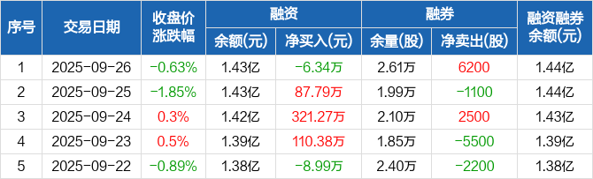 渤海轮渡:融资净偿还6.34万元,融资余额1.43亿元(09-26)