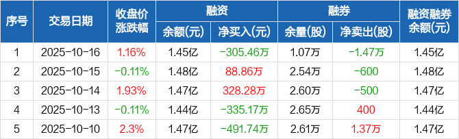 渤海轮渡:融资净偿还305.46万元,融资余额1.45亿元(10-16)