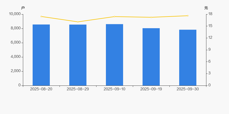 2025年8月20日至今,公司股东户数有所下降,区间跌幅为8.56%。2025年8月20日至2025年9月30日区间股价上涨1.09%。