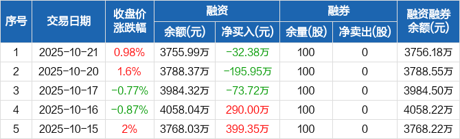 万丰股份:连续3日融资净偿还累计302.04万元(10-21)