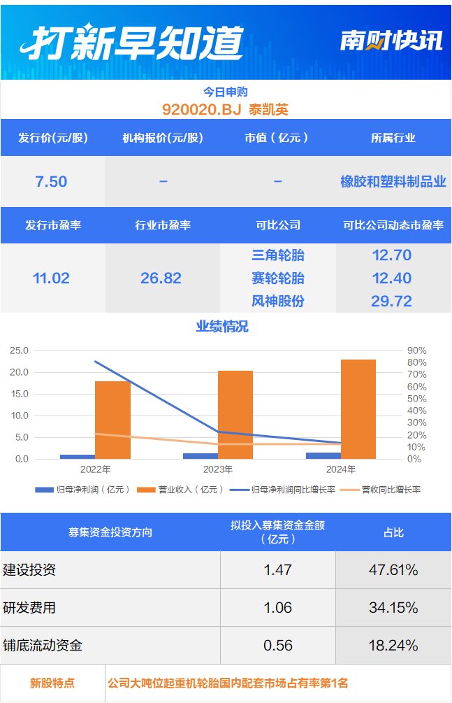 泰凯英为国内矿业及建筑业轮胎细分领域首家登陆北交所的企业,被业内视为“北交所轮胎第一股”。