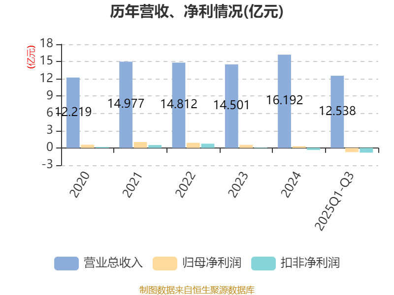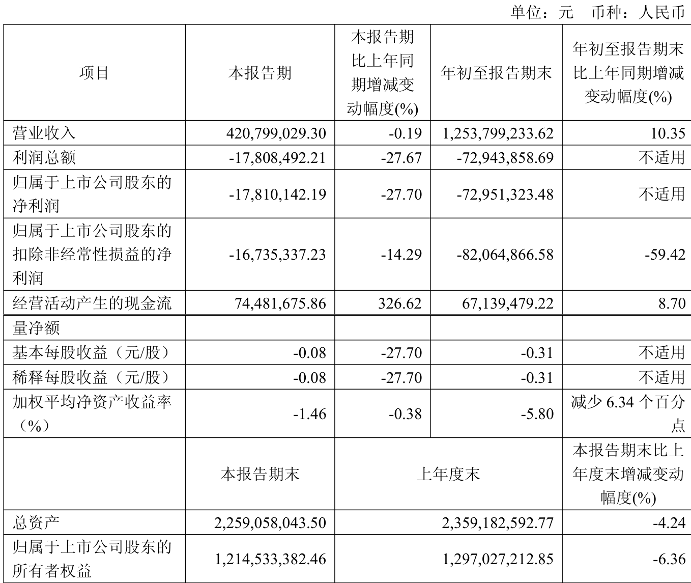 中证智能财讯圣龙股份(603178)10月20日披露2025年第三季度报告。前三季度公司实现营业总收入12.54亿元,同比增长10.35%;归母净利润亏损7295.13万元,上年同期盈利686.2万元;扣非净利润亏损8206.49万元,上年同期亏损5147.63万元;经营活动产生的现金流量净额为6713.95万元,同比增长8.70%;报告期内,圣龙股份基本每股收益为-0.31元,加权平均净资产收益率为-5.80%。