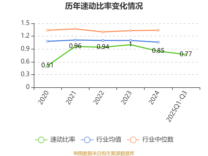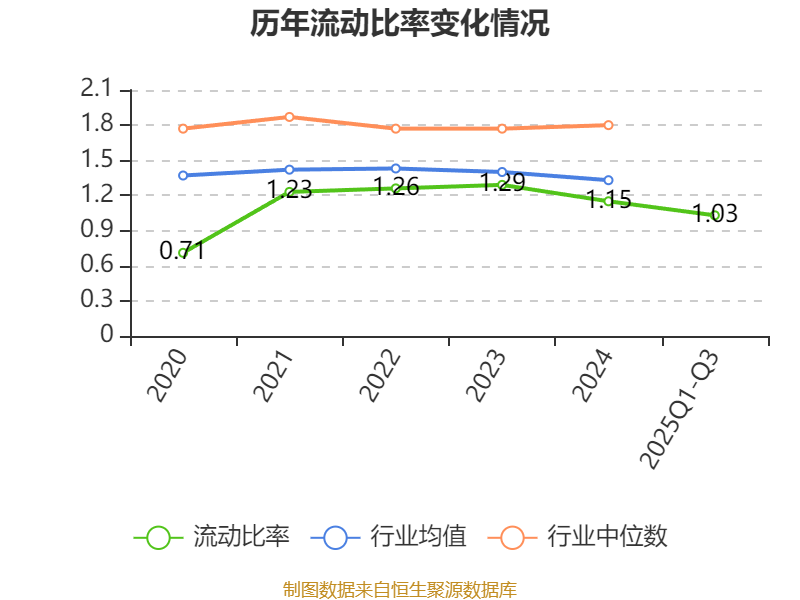 2025年前三季度,公司流动比率为1.03,速动比率为0.77。