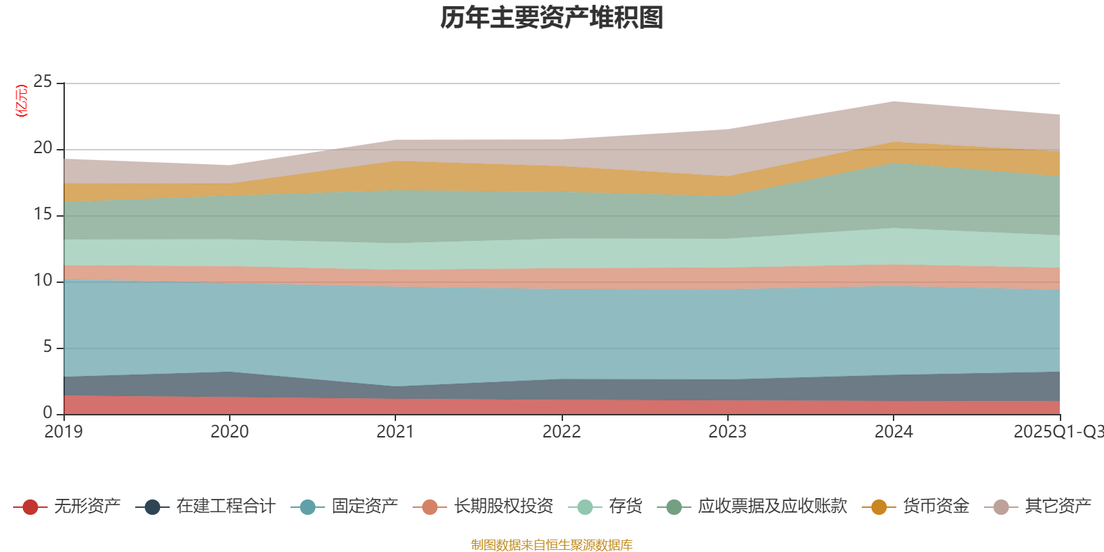 资产重大变化方面,截至2025年三季度末,公司交易性金融资产合计较上年末减少85.71%,占公司总资产比重下降2.52个百分点;货币资金较上年末增加19.19%,占公司总资产比重上升1.65个百分点;在建工程合计较上年末增加13.29%,占公司总资产比重上升1.53个百分点;应收款项融资较上年末增加193.31%,占公司总资产比重上升1.39个百分点。