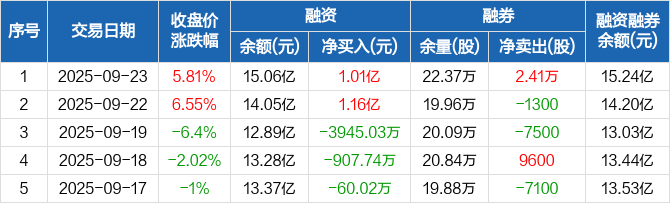 新泉股份:融资余额15.06亿元,创历史新高(09-23)