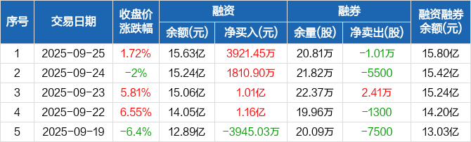 新泉股份:融资余额15.63亿元,创历史新高(09-25)