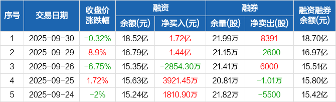 新泉股份:融资余额18.52亿元,创历史新高(09-30)