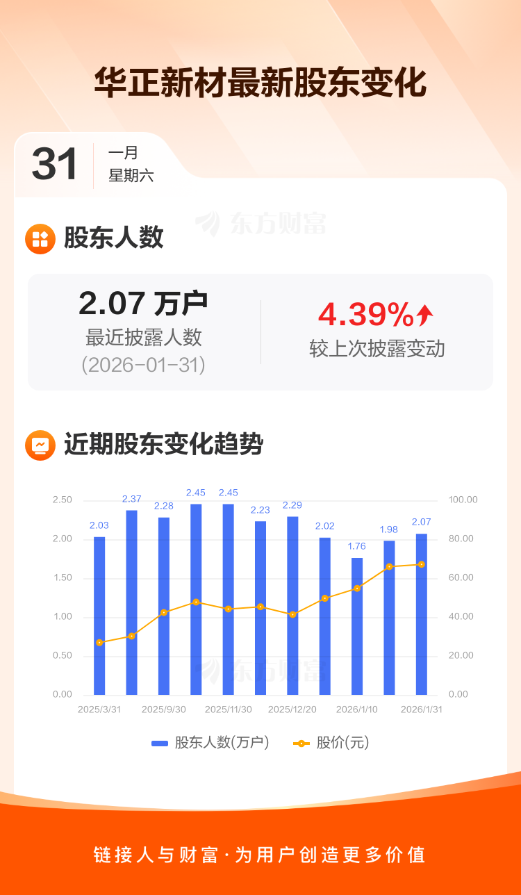 华正新材:截至1月31日最新股东户数2.07万户,较上期增加4.39%