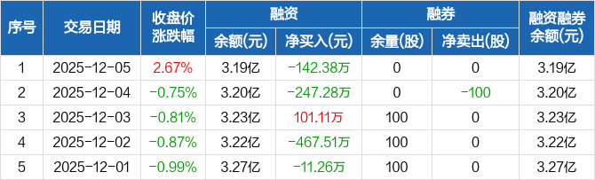 望变电气:融资净偿还142.38万元,融资余额3.19亿元(12-05)