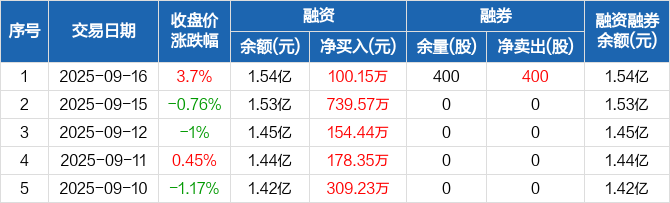 中力股份:连续6日融资净买入累计1643.32万元(09-16)