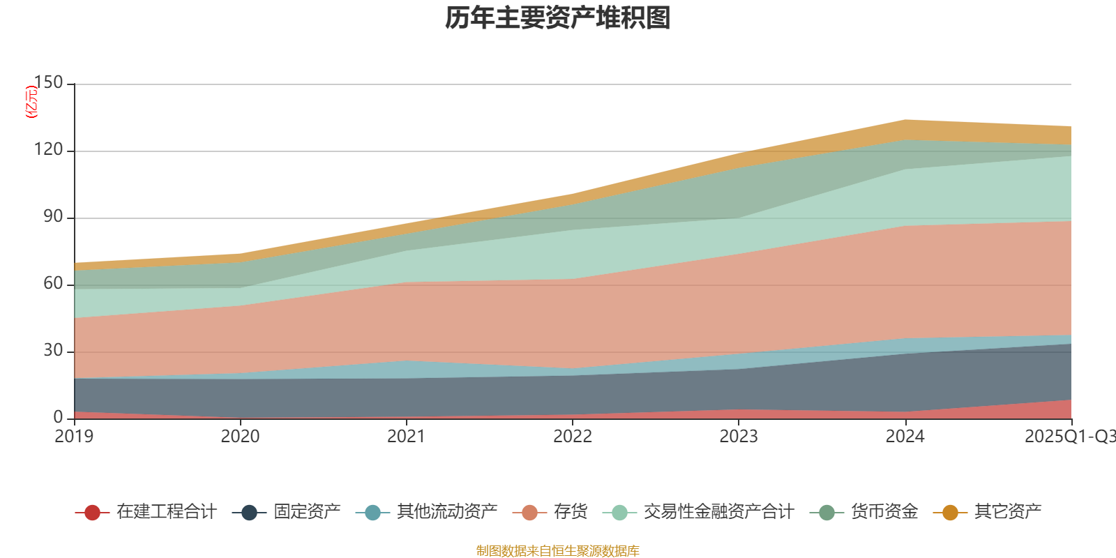 资产重大变化方面,截至2025年三季度末,公司货币资金较上年末减少61.08%,占公司总资产比重下降5.91个百分点;在建工程合计较上年末增加179.72%,占公司总资产比重上升4.17个百分点;交易性金融资产合计较上年末增加14.91%,占公司总资产比重上升3.33个百分点;其他流动资产较上年末减少43.09%,占公司总资产比重下降2.17个百分点。