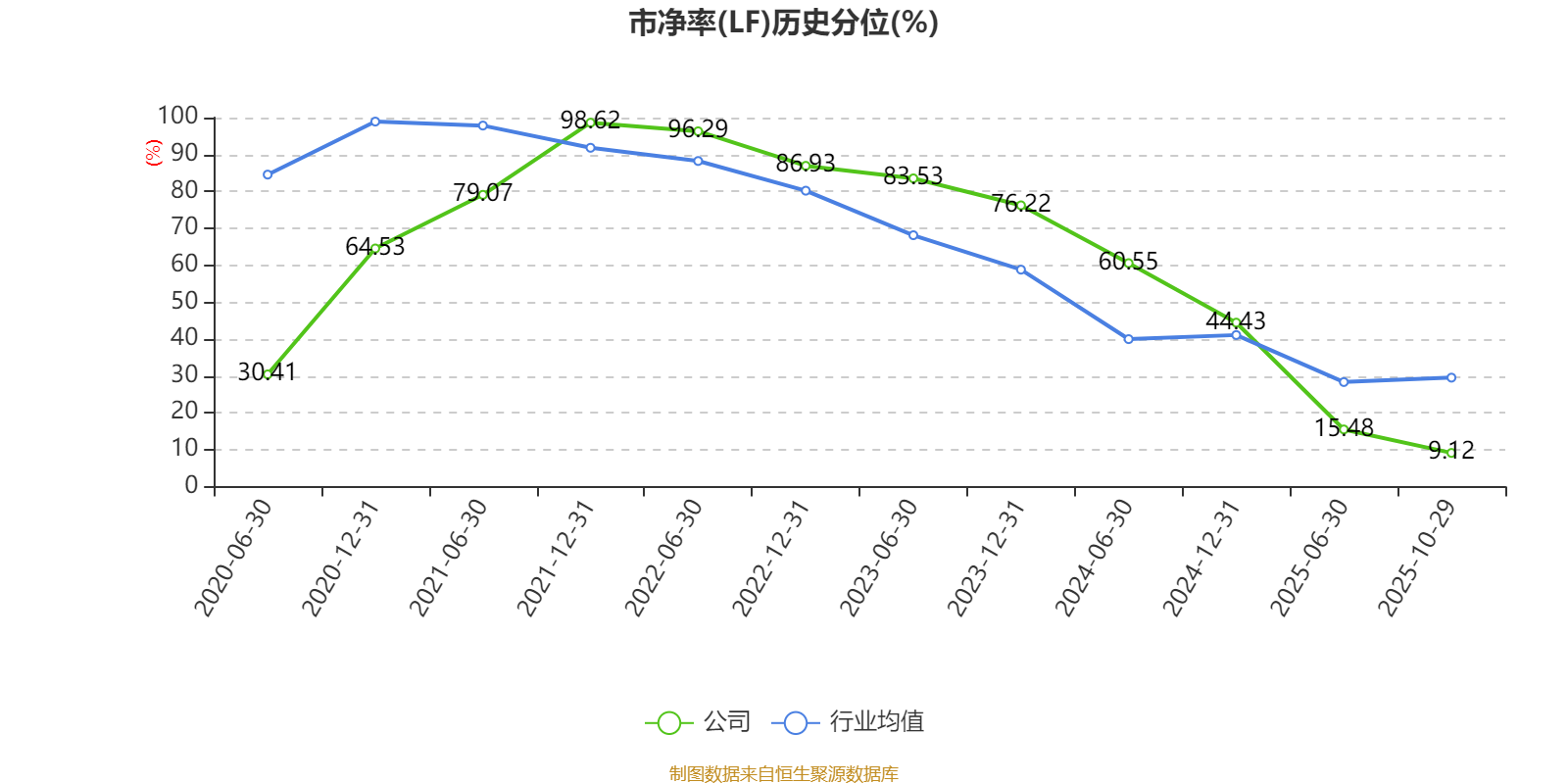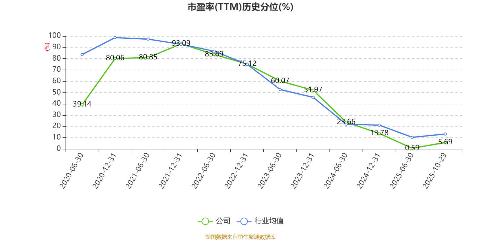 市盈率、市净率为负时,不显示当期分位数,会导致折线图中断。