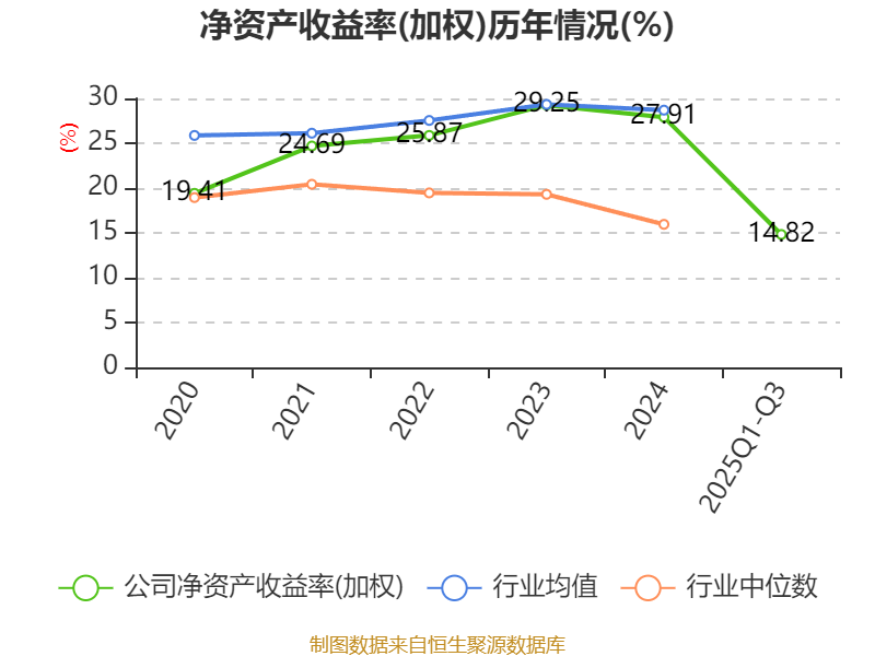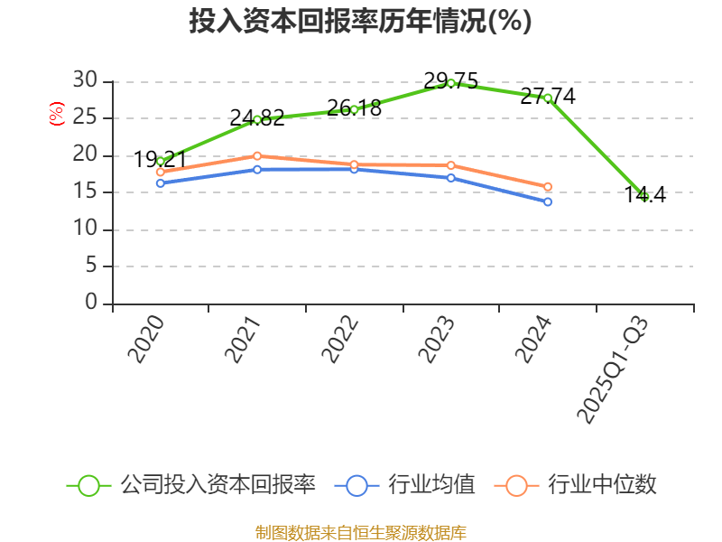 盈利能力方面, 2025年前三季度公司加权平均净资产收益率为14.82%,同比下降7.08个百分点。公司2025年前三季度投入资本回报率为14.4%,较上年同期下降7.93个百分点。