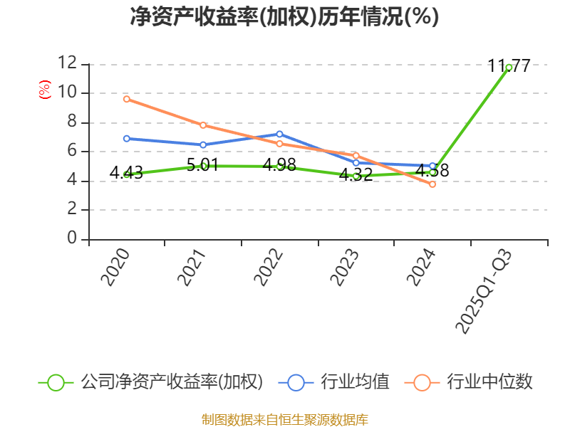 盈利能力方面, 2025年前三季度公司加权平均净资产收益率为11.77%,同比上升6.63个百分点。公司2025年前三季度投入资本回报率为7.83%,较上年同期上升4.44个百分点。