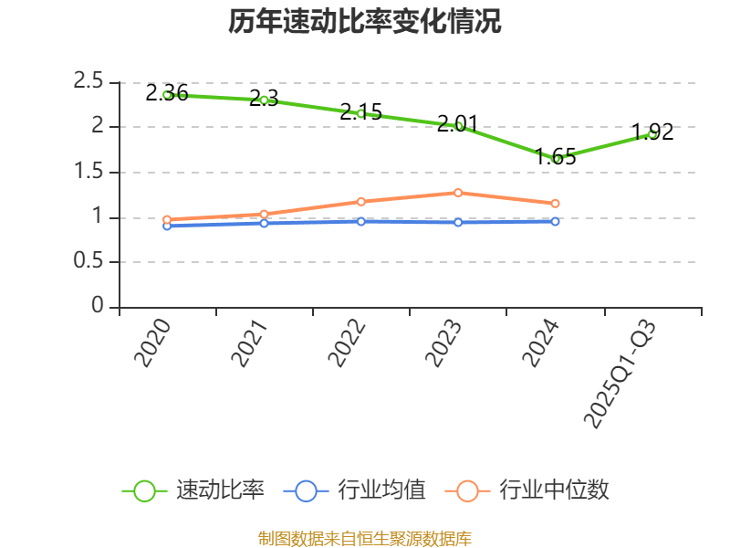 2025年前三季度,公司流动比率为2.18,速动比率为1.92。
