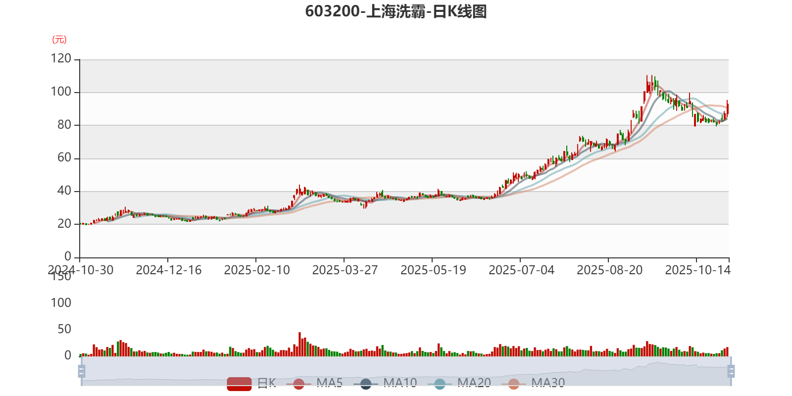 以10月29日收盘价计算,上海洗霸目前市盈率(TTM)约为142.93倍,市净率(LF)约15.01倍,市销率(TTM)约33.3倍。