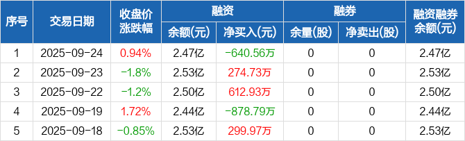 天有为:融资净偿还640.56万元,融资余额2.47亿元(09-24)
