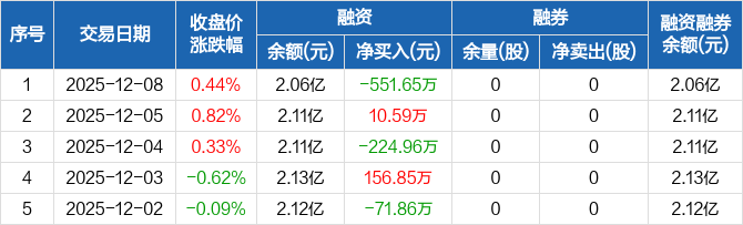 天有为:融资净偿还551.65万元,融资余额2.06亿元(12-08)