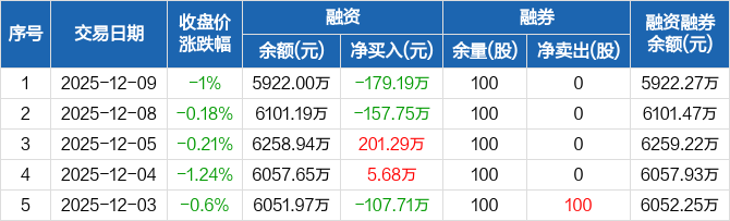 健尔康:融资净偿还179.19万元,融资余额5922万元(12-09)